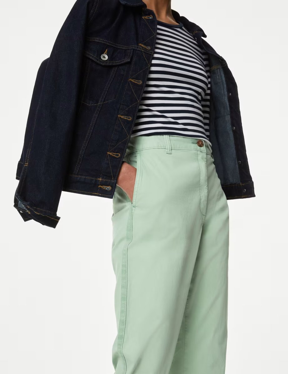 The M&S Cotton Rich Tea Dyed Slim Fit Chinos in Pale Jade is available in sizes 8LNG.