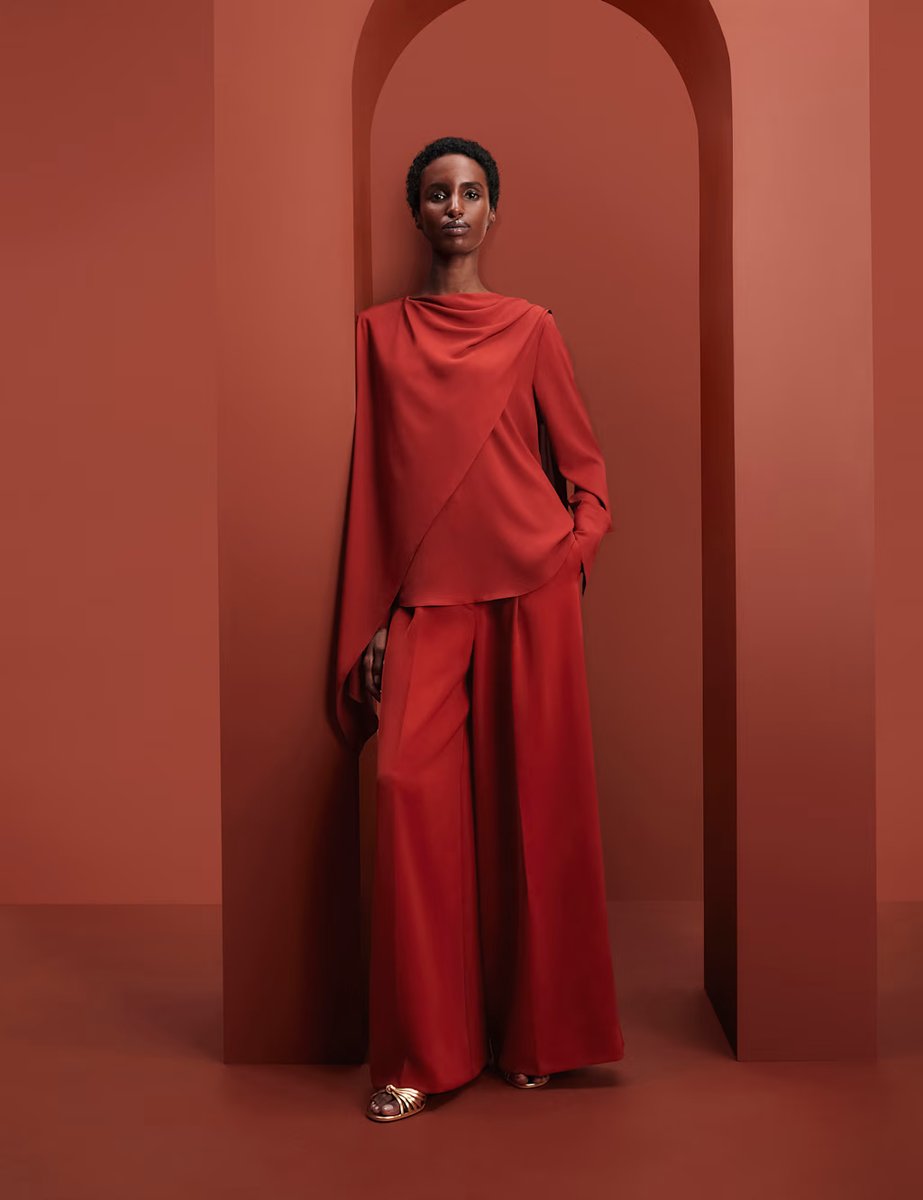 The M&S Single Pleat Wide Leg Trousers Paprika is available in sizes 10, 12, 14, 16, 18, 20, 22, 24, 6, 8.