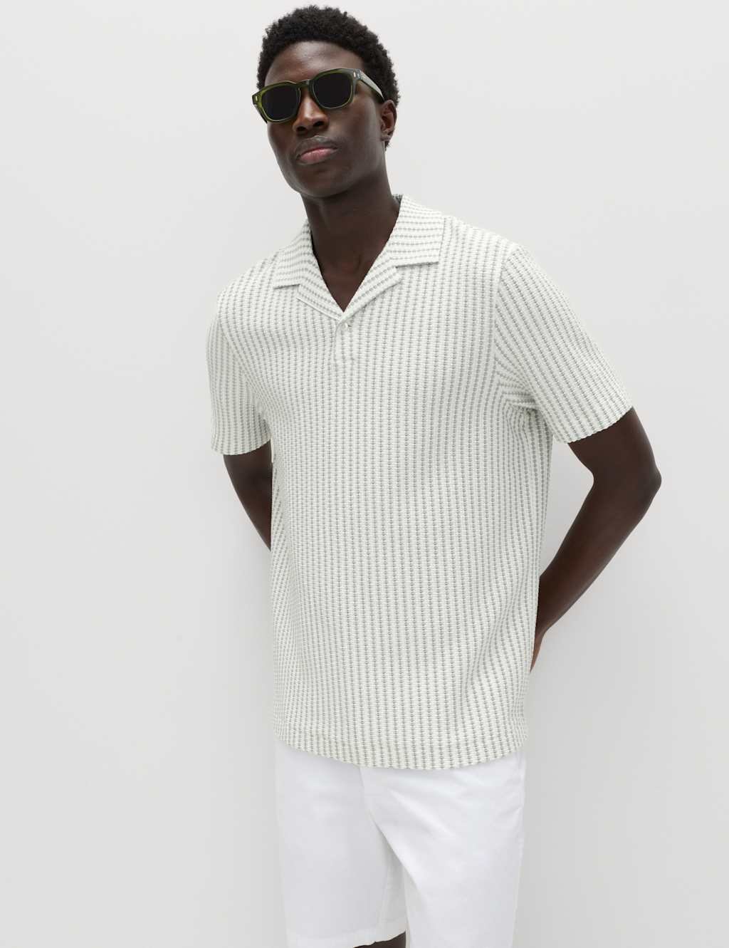 The M&S Cotton Rich Jersey Geometric Polo Shirt in Pistachio is ideal for casual, weekend.