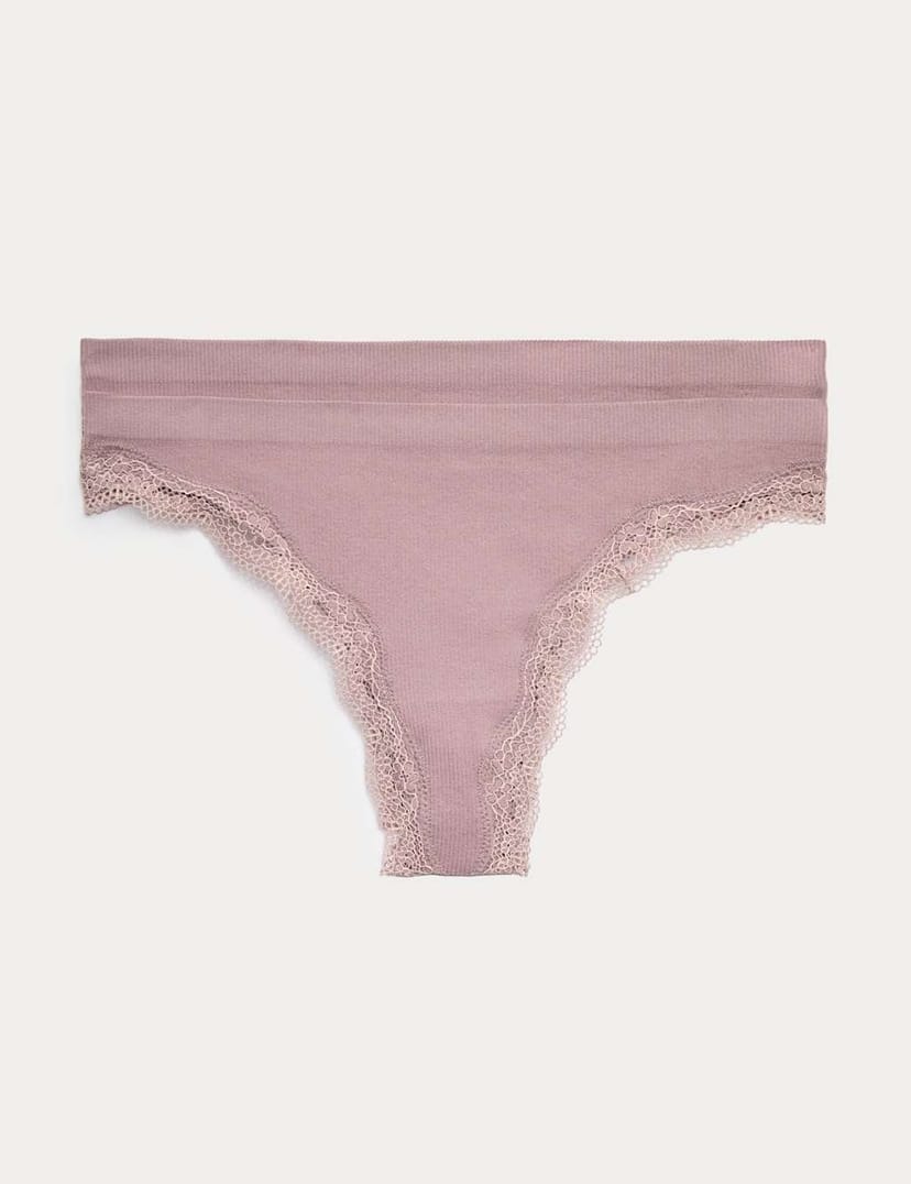 The M&S Praline Lace Trim Seamfree Thongs 2-Pack is ideal for everyday, casual.