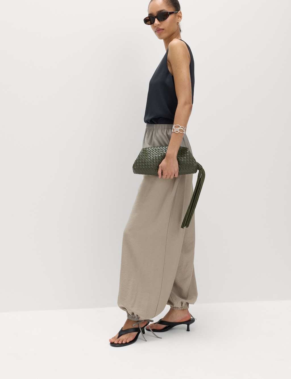 Stylishly dress for any occasion with these M&S Putty Viscose Balloon Trousers. Featuring voluminous balloon legs and tied hems for a contemporary silhouette, these trousers offer an easy pull-on style with an elasticated waist.