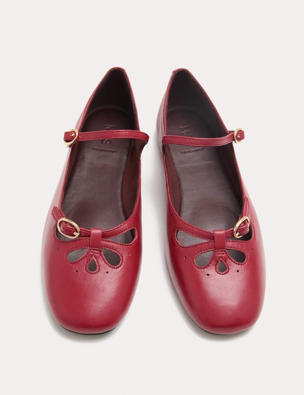 View Marks & Spencer's returns policyCharming red leather Mary Jane ballet pumps with playful cut-out detailing on the front. Crafted from smooth leather, these shoes feature a flat heel and adjustable buckle fastenings for a custom fit.