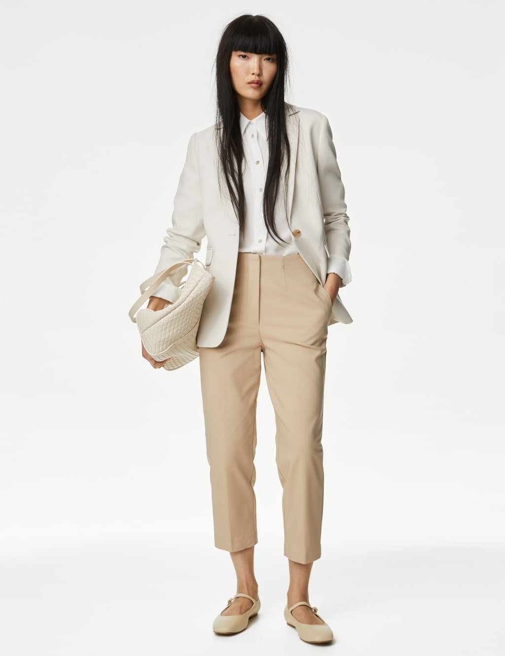 The M&S Slim Fit Cropped Trousers in Sand is ideal for work, business, smart-casual.