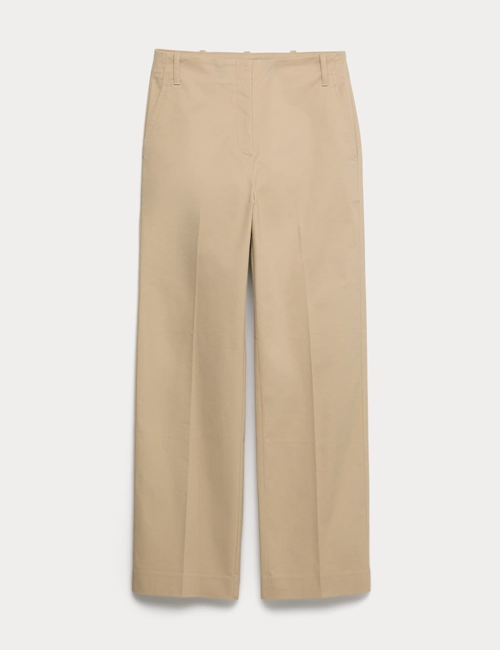 These M&S cotton-rich trousers feature a high-waist and straight-leg cut that ends at an ankle-grazer length. Designed for a regular fit, they offer added stretch for comfort and include handy side pockets. Ideal for smart-casual occasions.