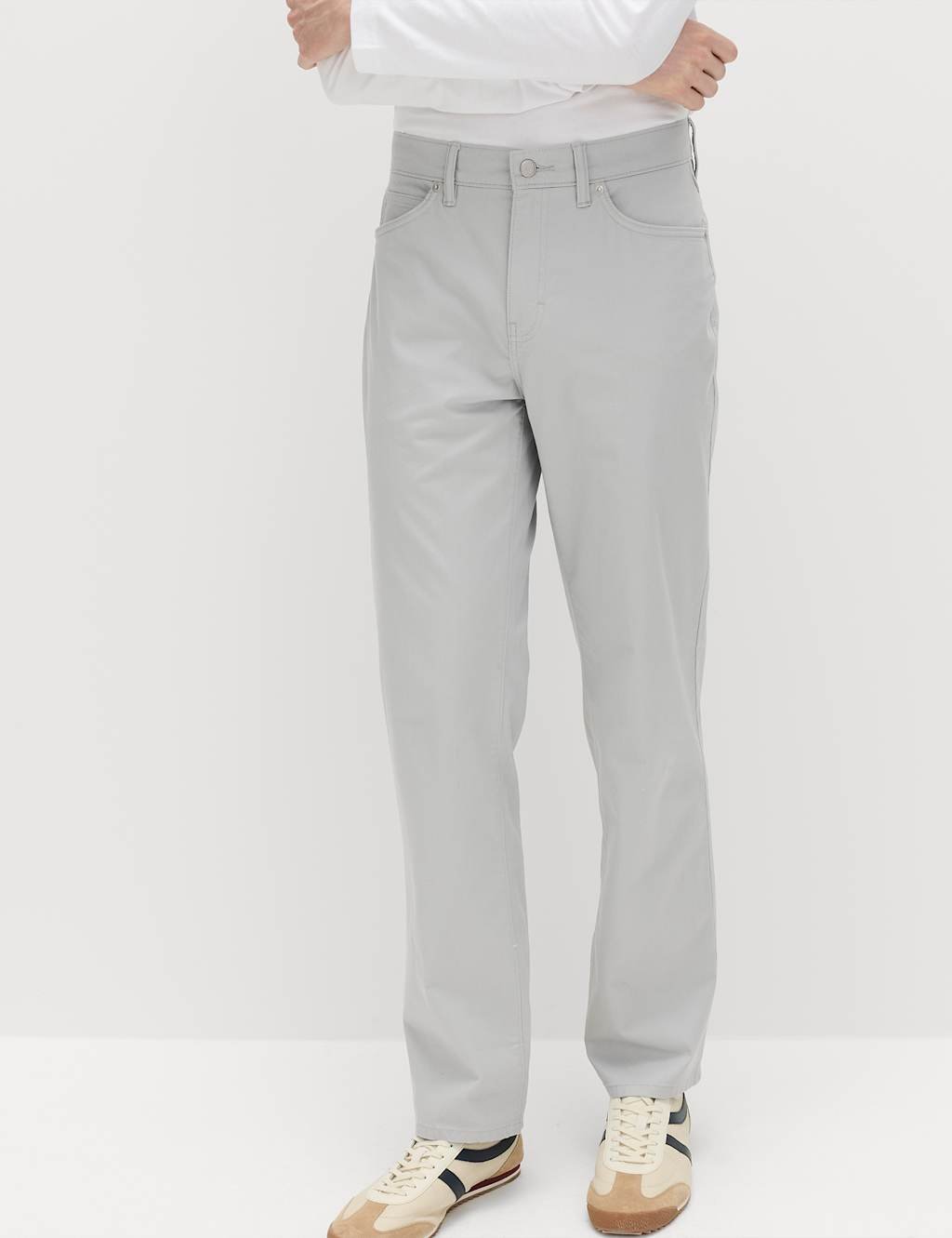 Designed in silver grey, these straight-fit trousers feature a textured cotton-rich fabric with added stretch for easy wear. The five-pocket design keeps your essentials handy, making them a versatile addition to your casual wardrobe.