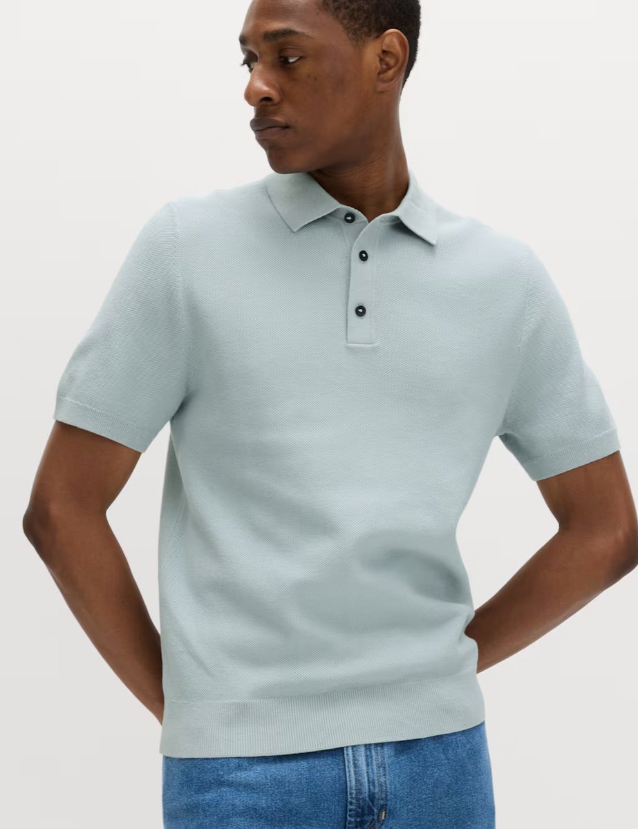 The M&S Classic Soft Blue Cotton Rich Polo Shirt is ideal for casual, smart-casual.