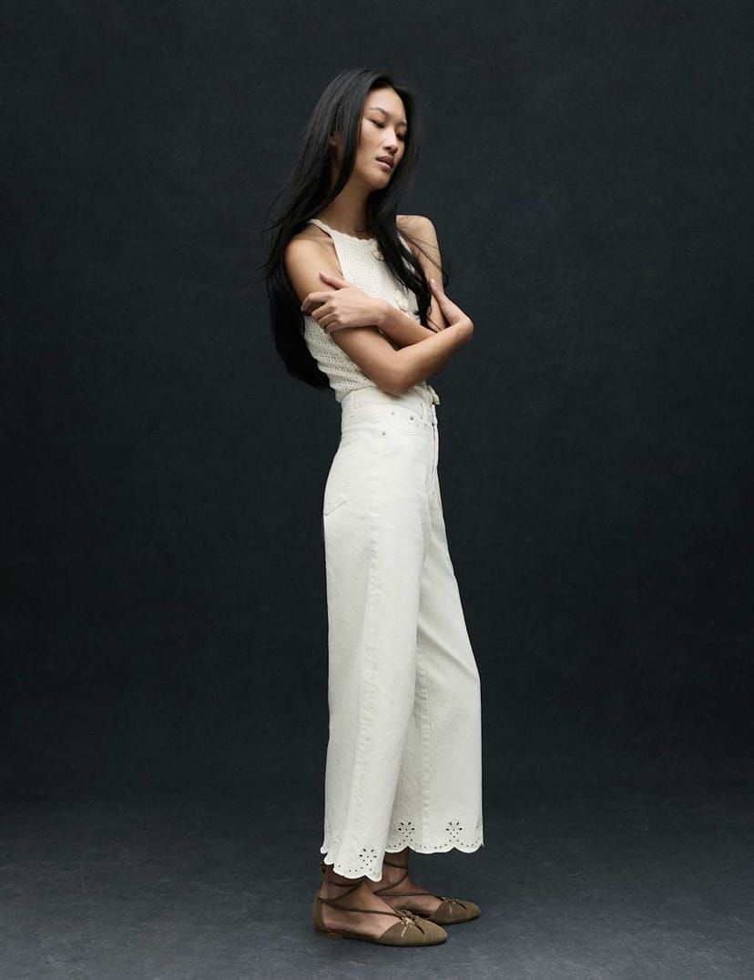 The M&S Soft White Broderie Wide Leg Cropped Jeans is available in sizes 10, 12, 14, 16, 18, 20, 22, 24, 6, 8.