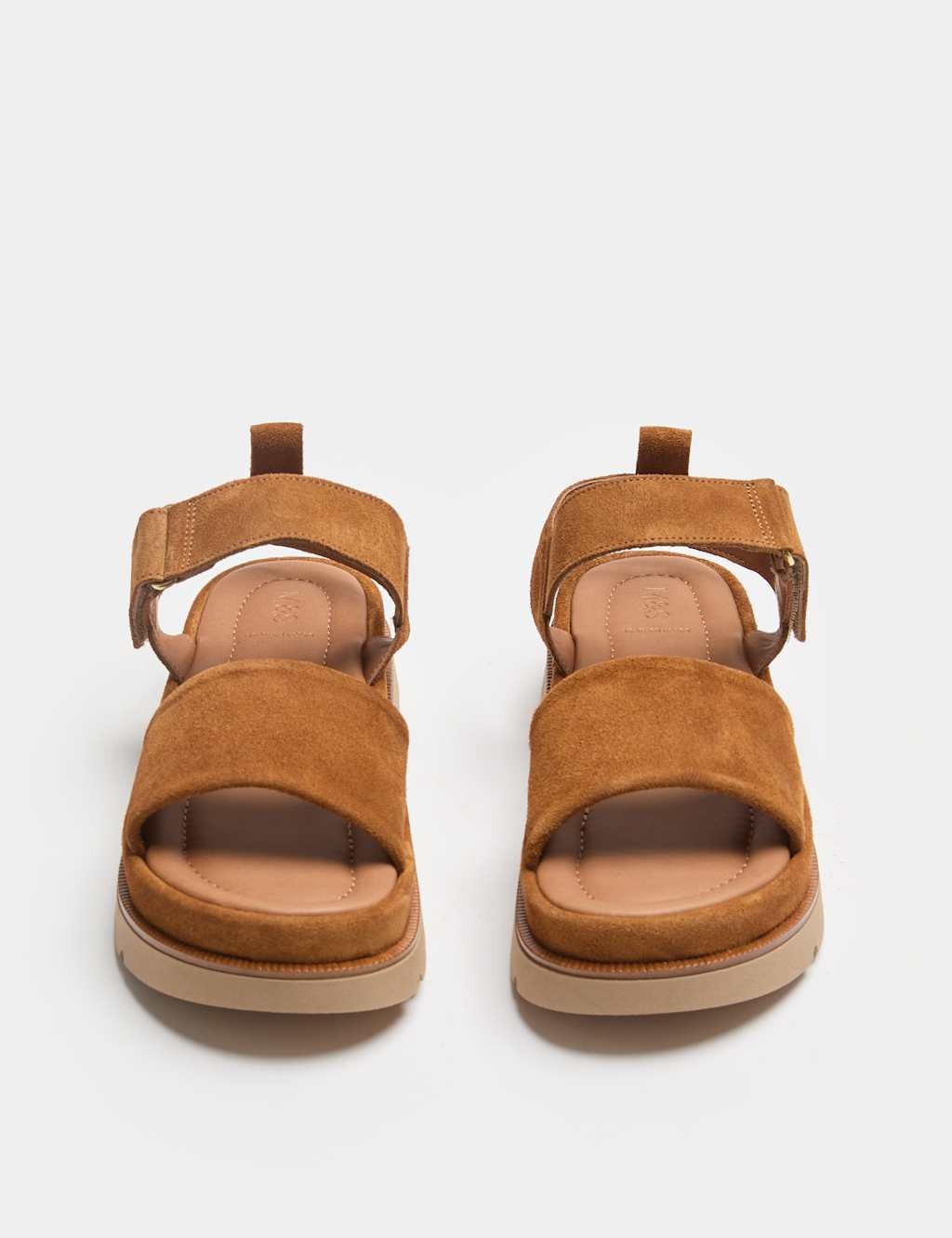 The M&S Suede Ankle Strap Flatform Sandals in Tan is available in sizes 3, 4, 5, 6, 7, 8.