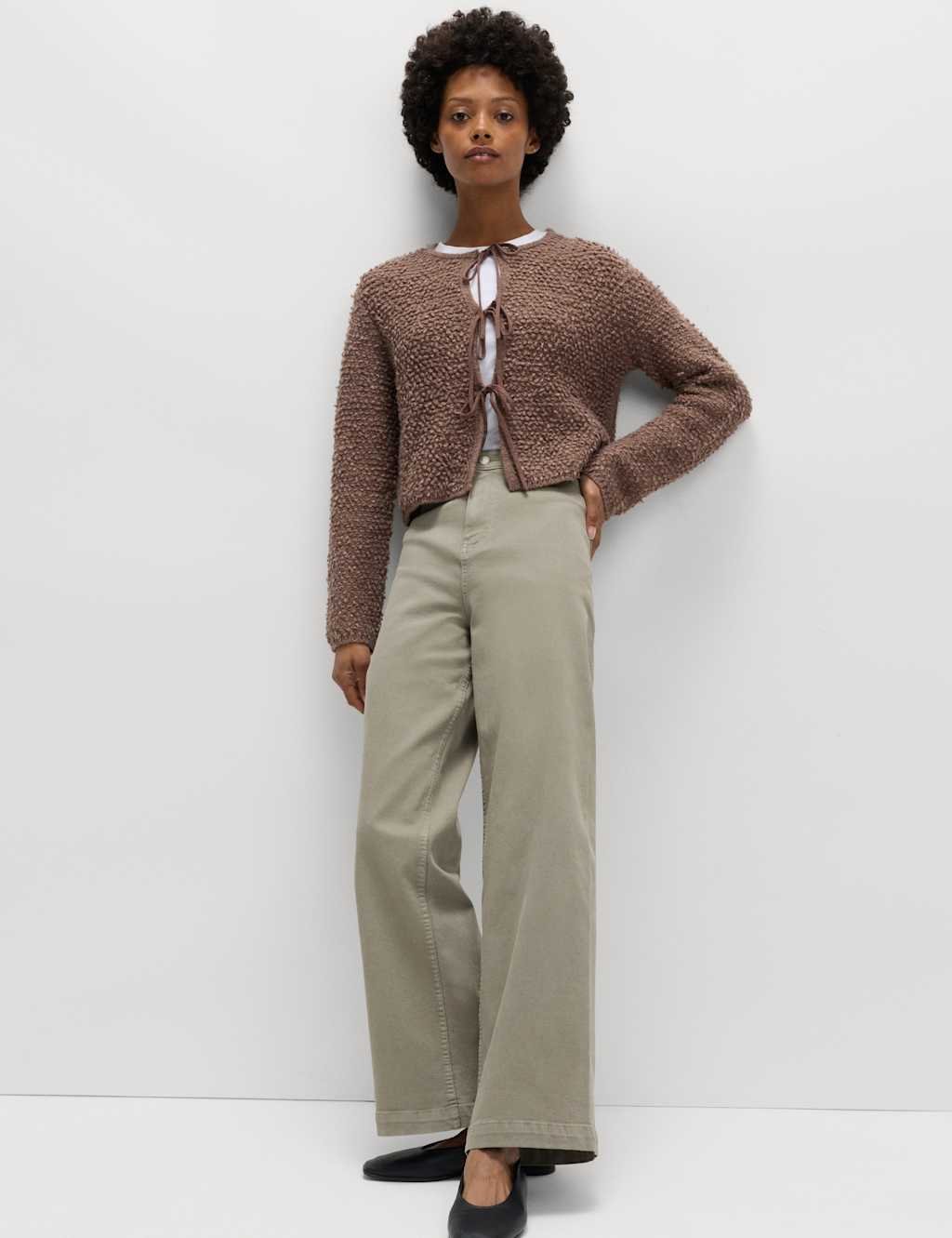 The M&S High Waisted Wide Leg Ankle Grazer Jeans in Taupe is ideal for work, casual.