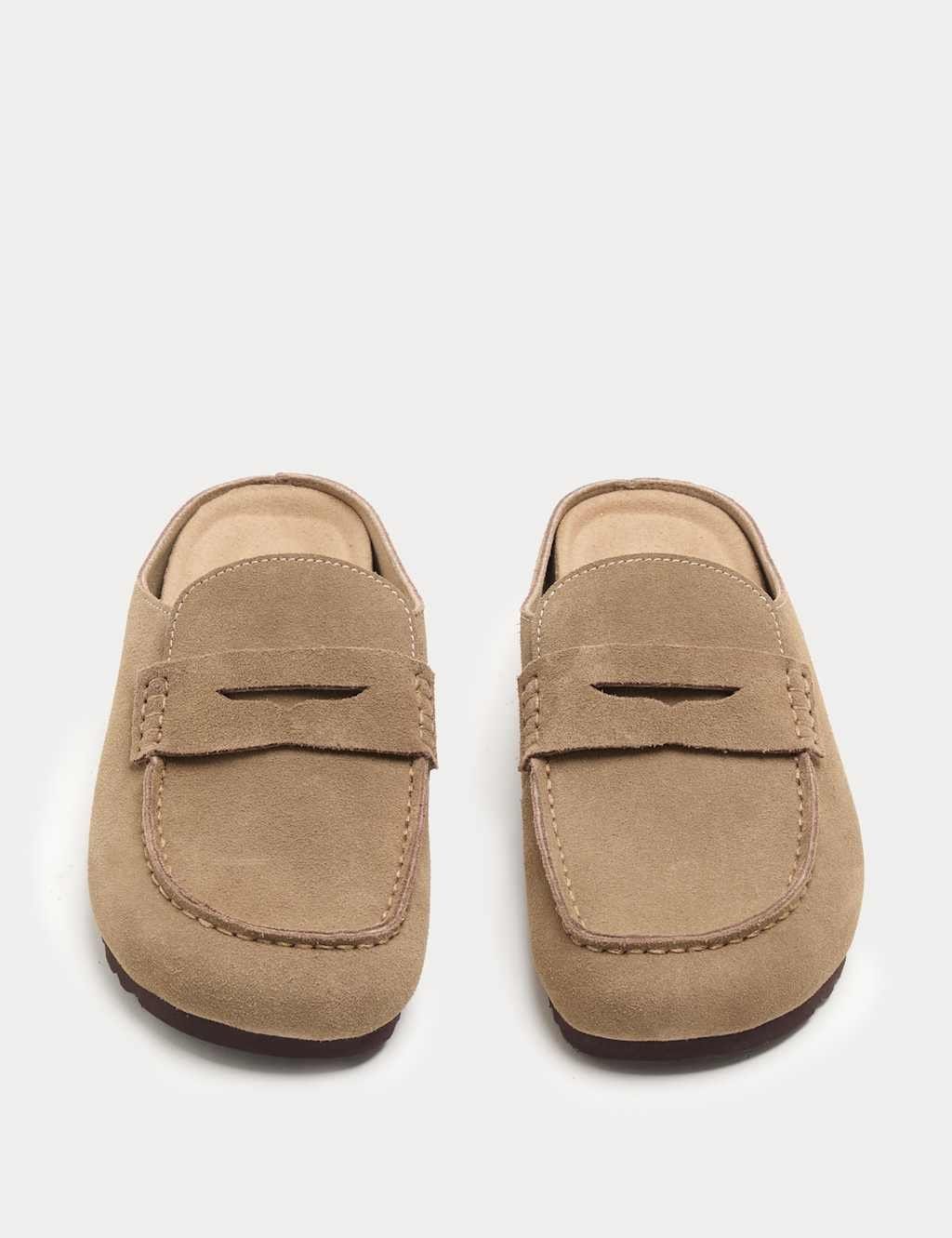 The M&S Taupe Suede Flat Loafer Clogs is made from suede.