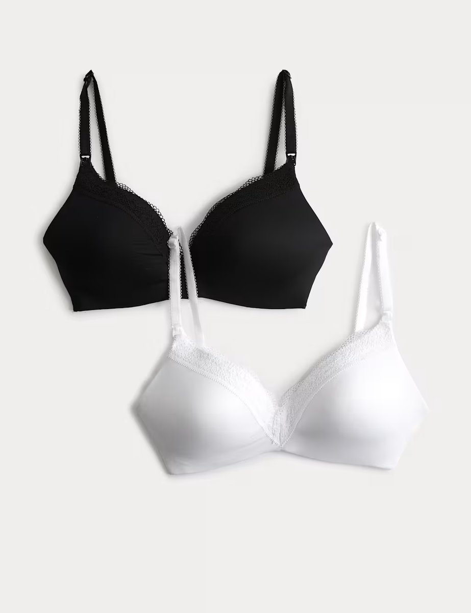 The M&S 2 Pack Jasmine Lace Trim Maternity Nursing Bra B-G White Mix is ideal for casual, work, lounge.