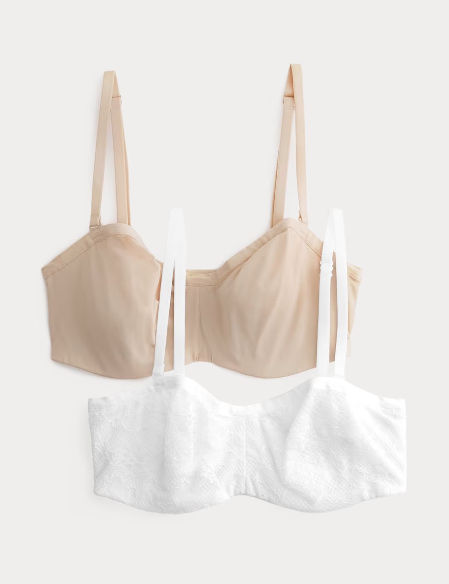 The M&S 2 Pack Jasmine Lace Wired Strapless Bras (A-E) White Mix is ideal for casual, formal.