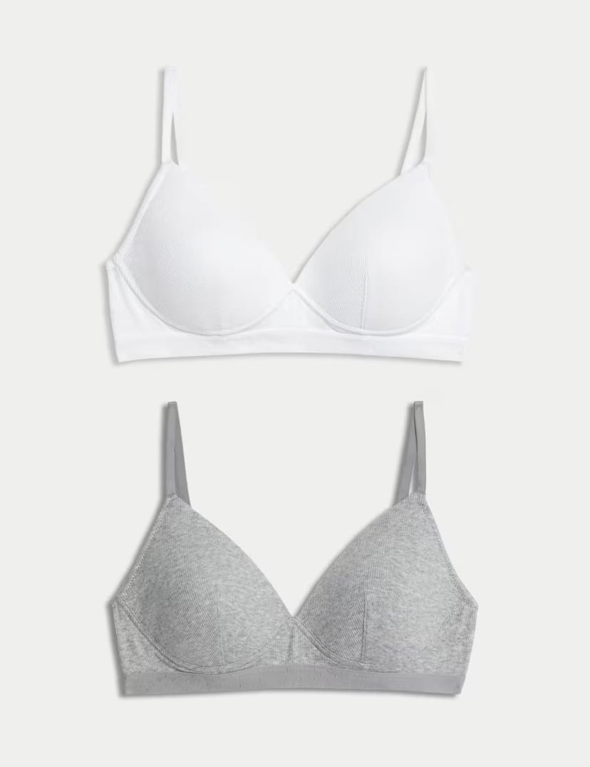 The M&S 2 Pack Non Wired Cotton Rich Ribbed First Bras is ideal for casual, work, lounge.
