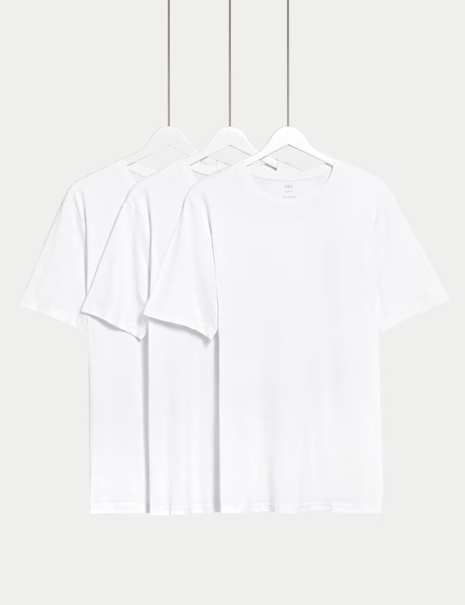The M&S Slim Fit Pure Cotton Crew Neck T-Shirts White Mix is ideal for casual, smart-casual.