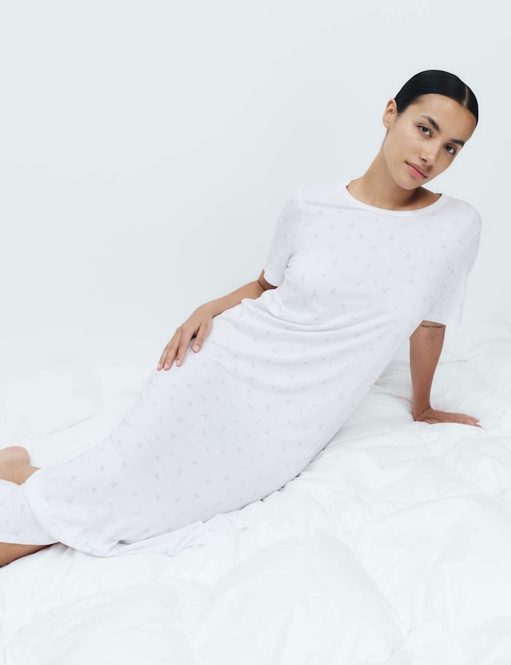The M&S Cotton Modal Printed Long Nightdress in White Mix is ideal for casual.