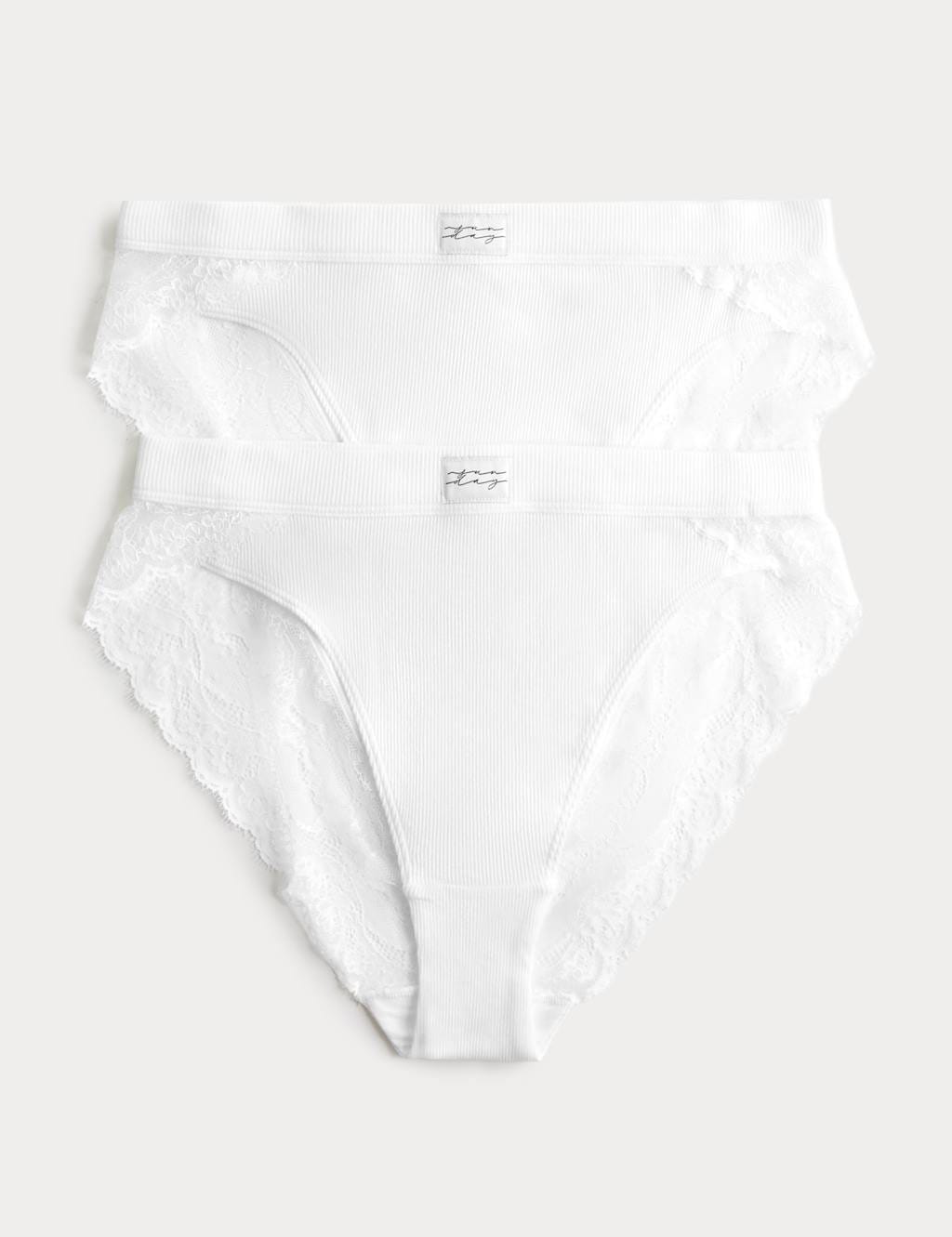 The M&S 2 Pack Juni Cotton Rib High Waisted Knickers White is ideal for everyday, casual.