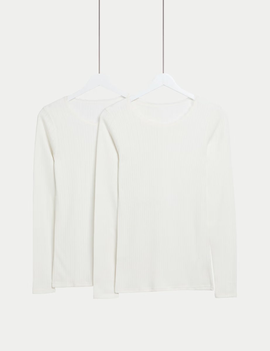 The M&S Warmth Pointelle Thermal Long Sleeve Tops in White is ideal for casual, work.