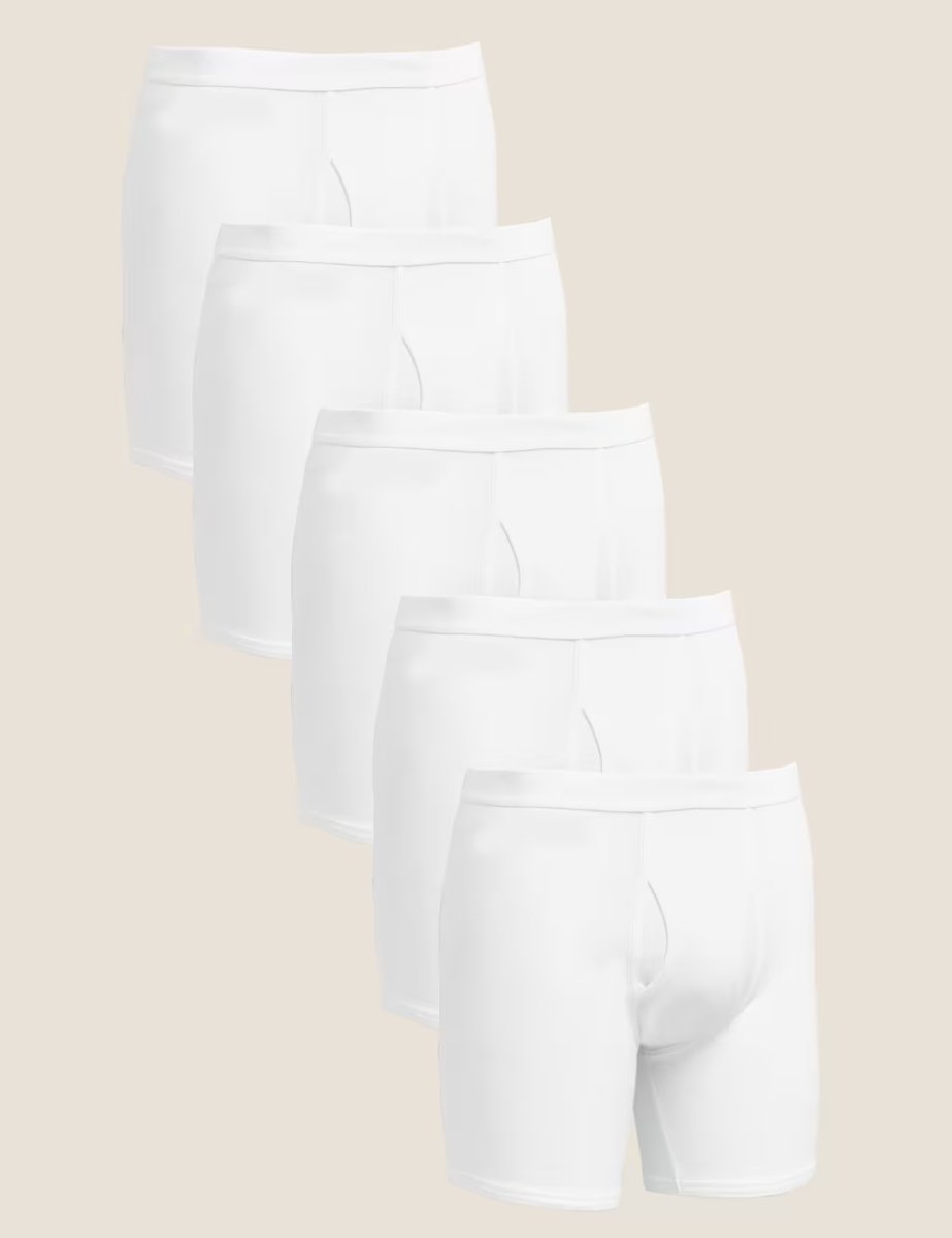 The M&S Longer Length Cotton Trunks in White is available in sizes M.