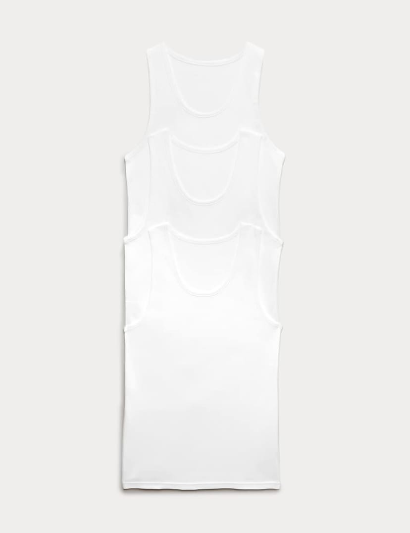 The M&S 3 Pack Pure Cotton Sleeveless Vests White is ideal for everyday, casual, work.