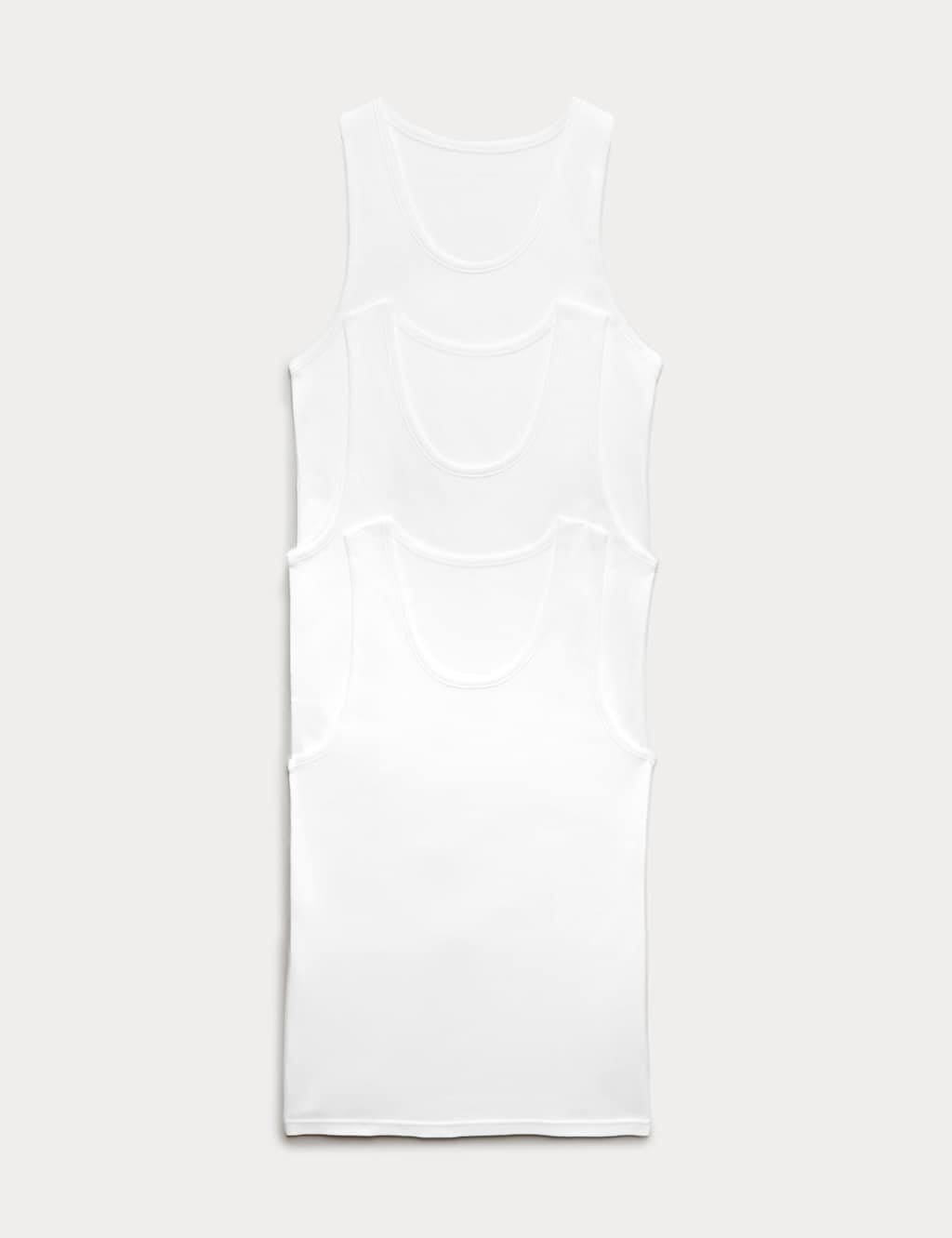 M&S 3 Pack Pure Cotton Sleeveless Vests White