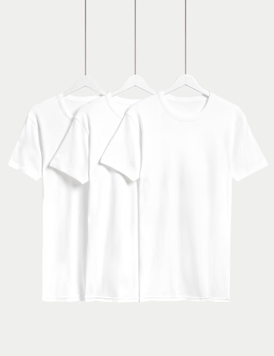 The M&S Pure Cotton T-Shirt Vests Pack in White is ideal for everyday, casual.