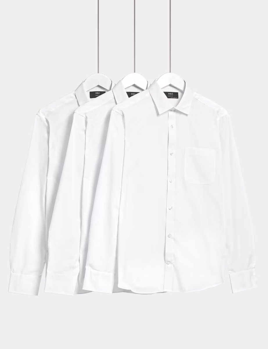 The M&S White Long Sleeve Easy Iron Slim Fit Shirt is ideal for work, business, smart-casual.
