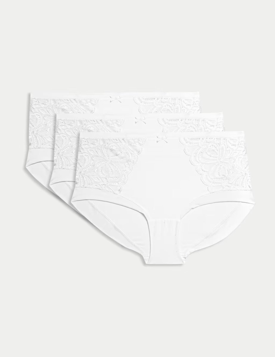 The M&S Elegant Lace High Rise Shorts in White is available in sizes 10, 12, 14, 16, 18, 20, 22, 24, 26, 28, 6, 8.