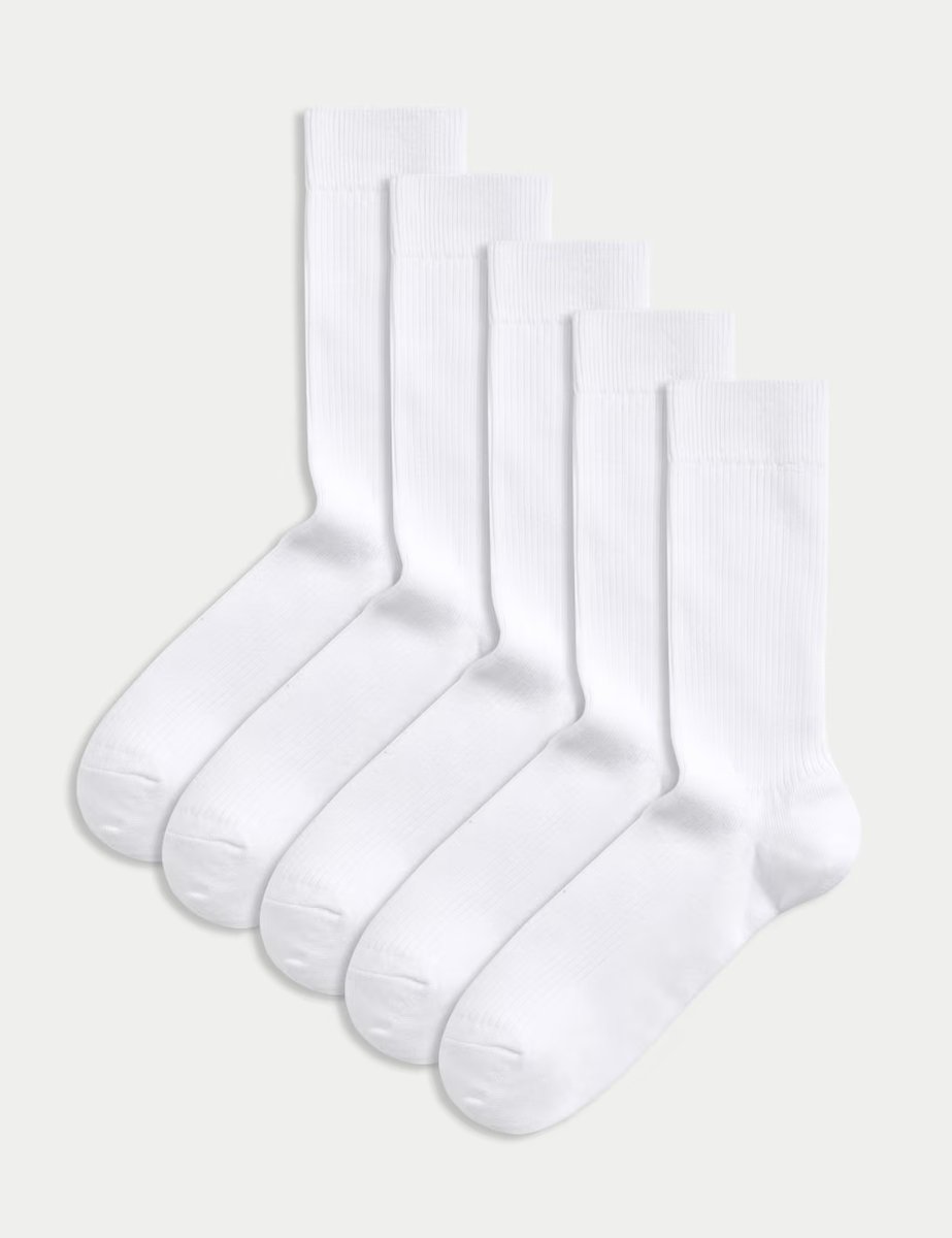 The M&S 5 Pack Cotton Rich Ribbed Socks in White is ideal for everyday, casual.