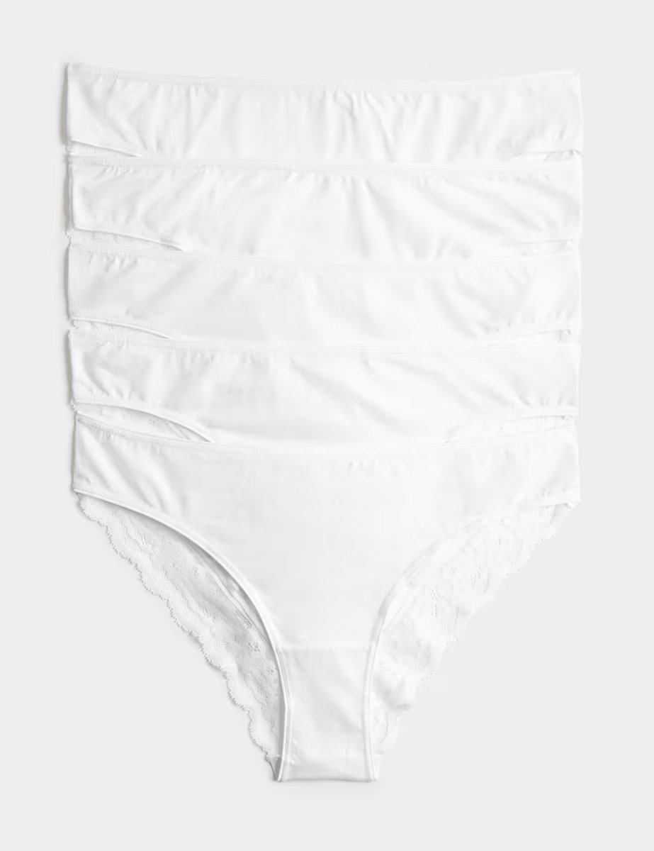 The M&S 5pk Cotton Rich Printed Brazilian Knickers White is ideal for casual, work, evening.