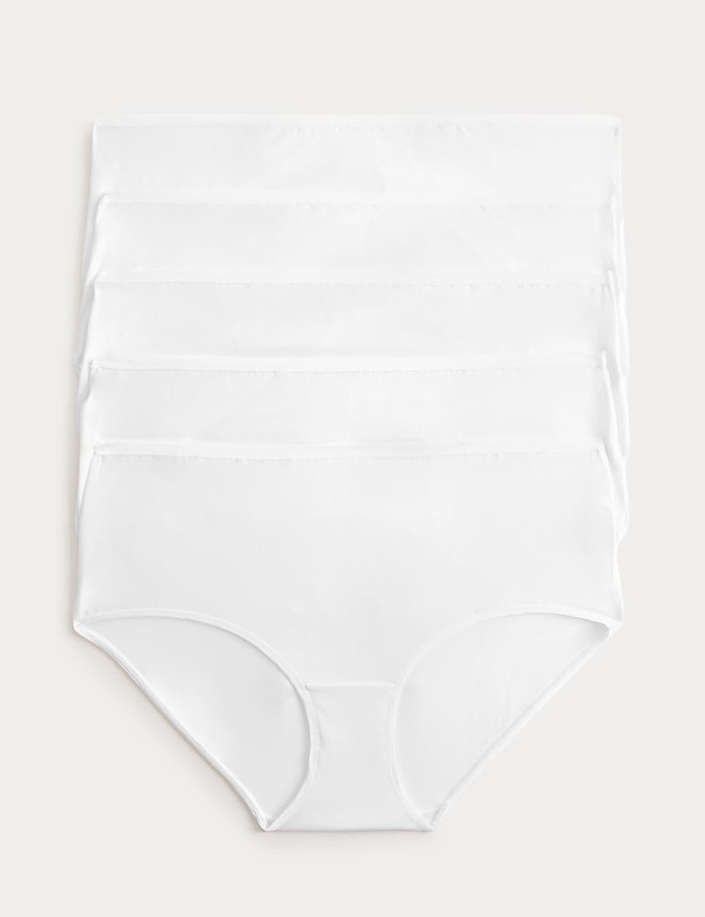 Five-pack of microfibre high-rise knicker shorts in white. Designed for a sleek, flattering look with added stretch for all-day comfort. Part of the M&S Collection, featuring versatile styles with unique details.