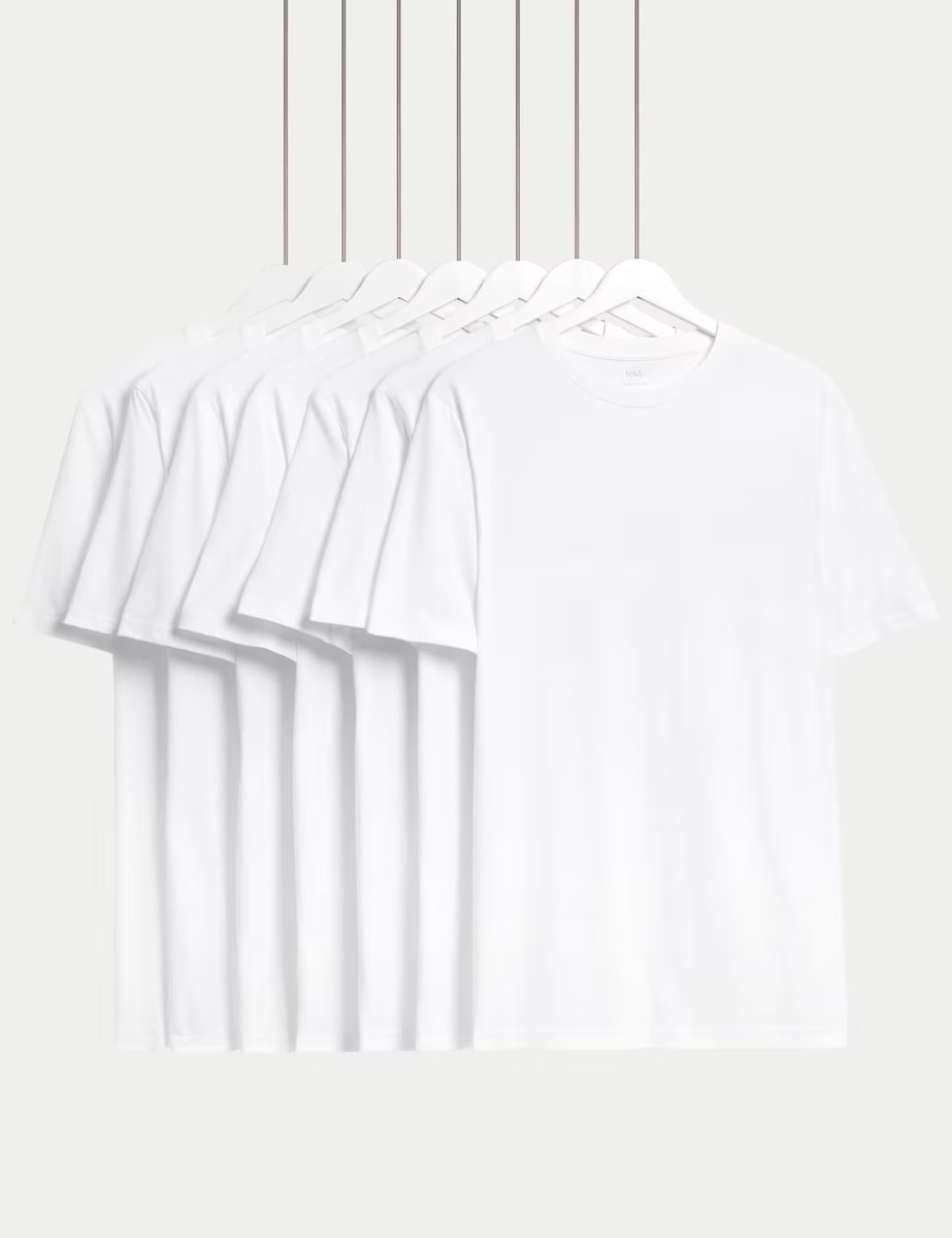The M&S Pure Cotton Crew Neck T-Shirts Pack in White is ideal for casual, everyday, weekend.