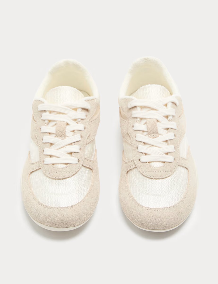 The M&S Retro Runner Trainers with Side Detail in White is available in sizes 3, 4, 5, 6, 7, 8.