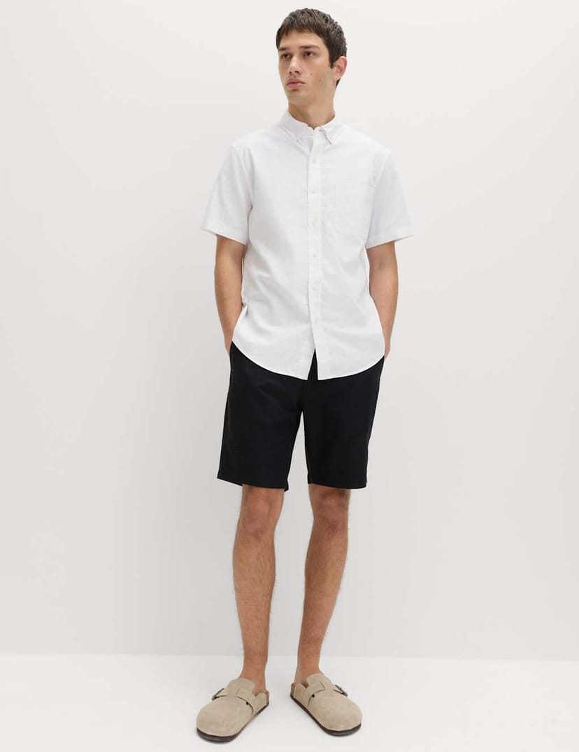 Stay cool in style with this short-sleeved shirt, which is made from durable linen and soft, breathable cotton. It's cut to a regular fit for comfort. The smart button-down collar complements the neat button-through fastening.