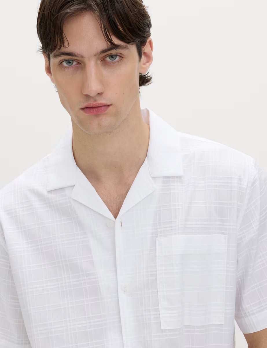 Designed with white, short sleeve, Cuban collar, regular fit, pure cotton and a neat button-through fastening, this shirt offers a cool and laid-back vibe with its on-trend checked pattern.