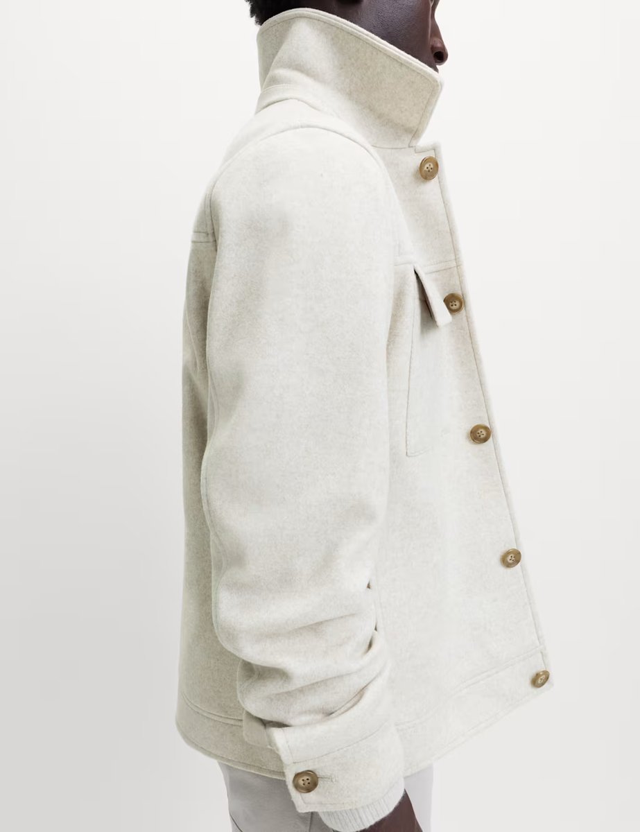This timeless winter white short jacket by M&S is crafted for layering. It features a collared neckline, button fastening, and two chest pockets for practicality. Perfect for adding a touch of sophistication to your winter wardrobe.