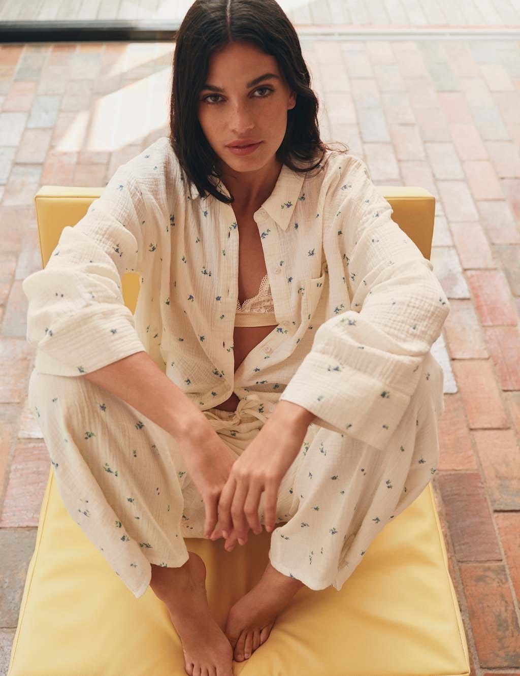 The M&S Yellow Mix Cotton Muslin Pyjama Top is available in sizes 10, 12, 14, 16, 18, 20, 22, 6, 8.