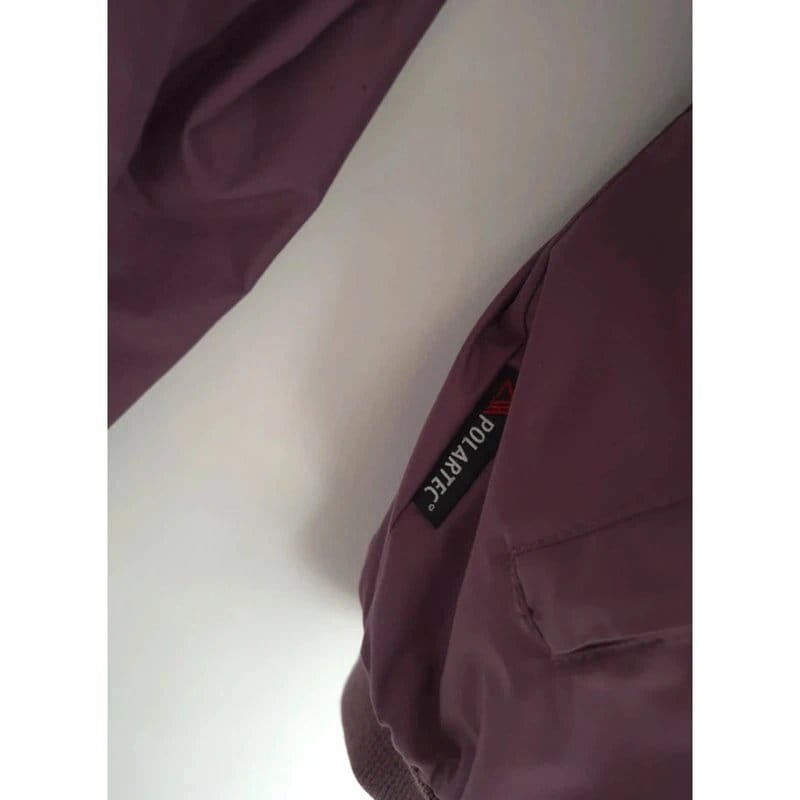 Stylish purple bomber jacket with a Polartec fleece lining for extra warmth. Features a water-resistant outer shell and functional pockets. Perfect for cool weather.