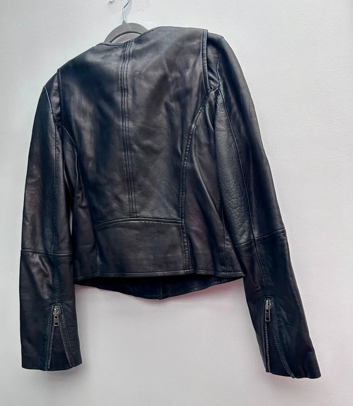 The Muubaa Black Leather Biker Jacket is available in sizes S.
