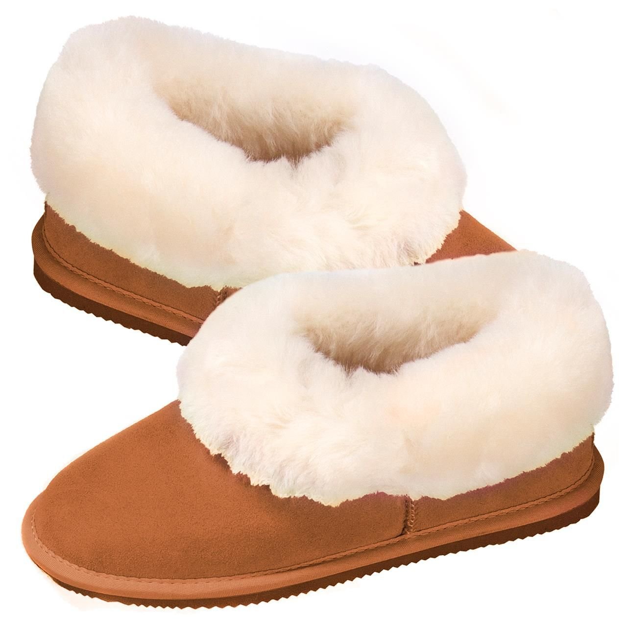 Luxurious light brown suede and sheepskin short slipper boots designed for ultimate comfort and warmth. Perfect for indoor wear, these boots feature a plush fur lining and a rubber sole for durability.