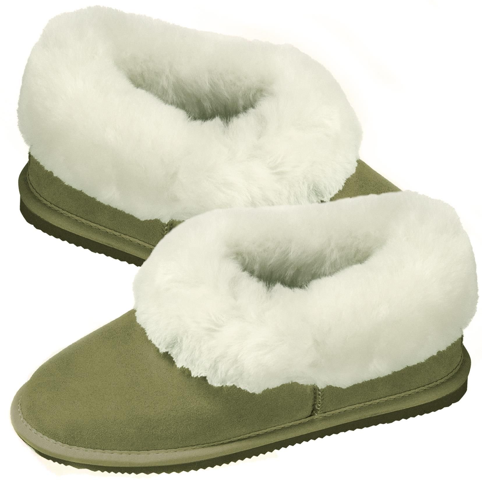 Luxurious pale green suede and sheepskin short slipper boots designed for ultimate comfort and warmth. Perfect for winter indoor wear.