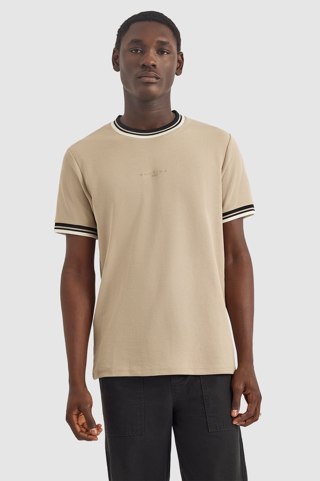 The Nautica Men's Beige Seaton T-Shirt is ideal for casual, everyday.