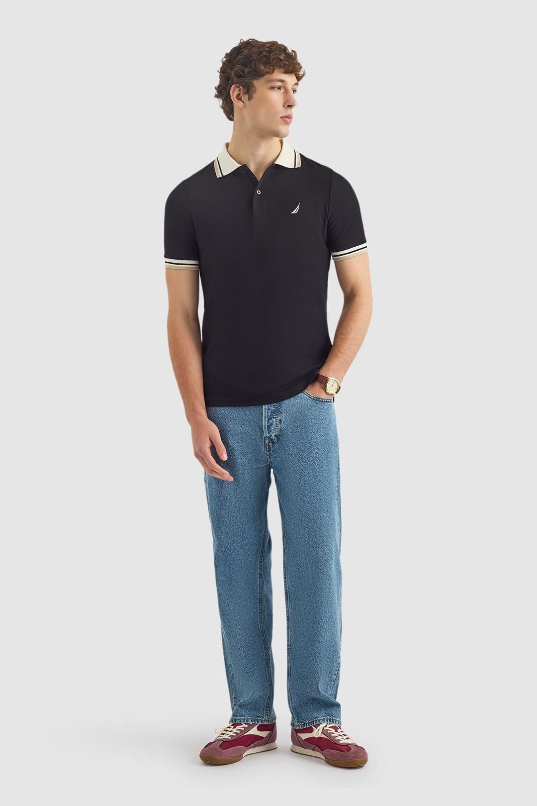 The Nautica Men's Bayer Polo Shirt in Black is ideal for casual, everyday, outdoor.