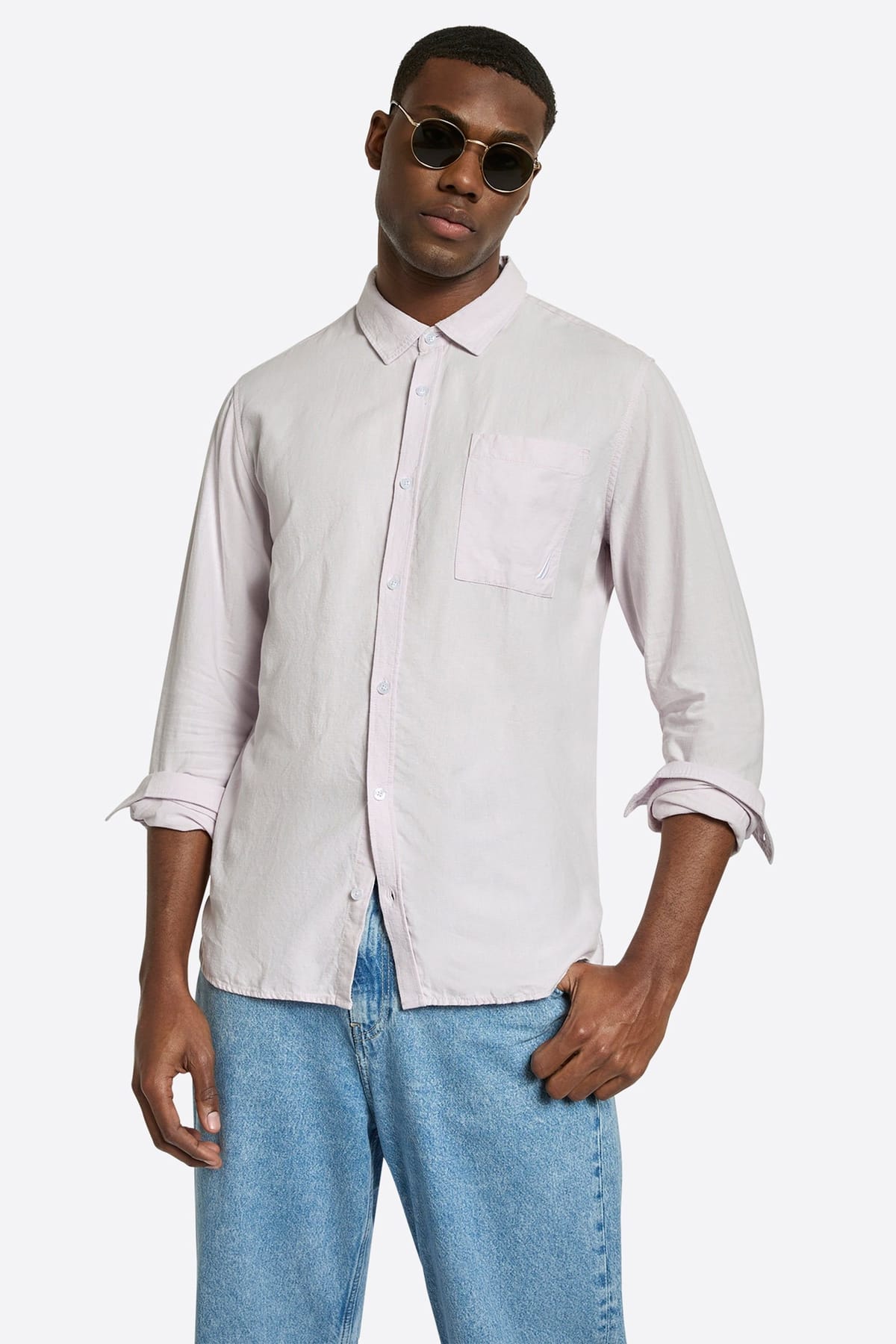 The Nautica Men's Lilac Long Sleeve Shirt is ideal for casual, everyday, work.
