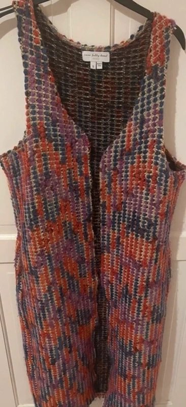 The Never Fully Dressed Chic Longline Waistcoat in Multi is available in sizes L.