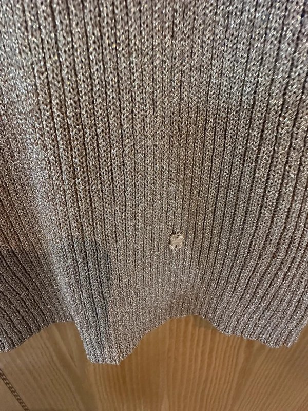 Beautiful twin set never worn with gold knitted fabric that has a flex of gold. Perfect for adding a touch of elegance to any outfit.