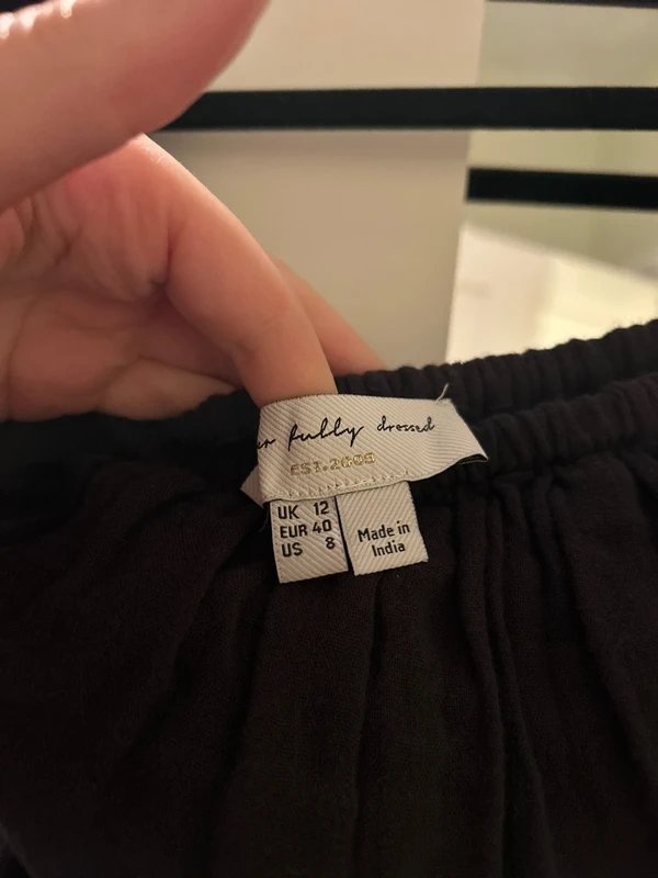 The black ruched off shoulder dress features fun multicolour details. Perfect for a casual day out.