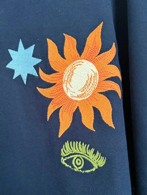 The Never Fully Dressed Navy Embroidered Sweatshirt is made from cotton, polyester.