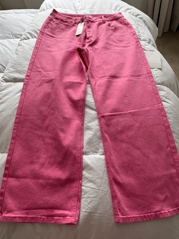 These BNWT Never Fully Dressed pink denim jeans in size 16 feature a wide leg fit and lovely details to the front and back pockets. Perfect for casual occasions.