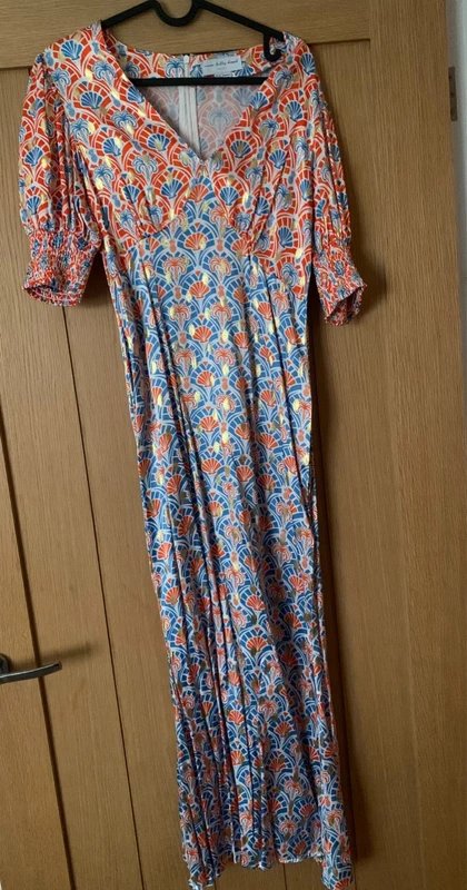 The Never Fully Dressed Satin Maxi Dress in Multi is available in sizes S.