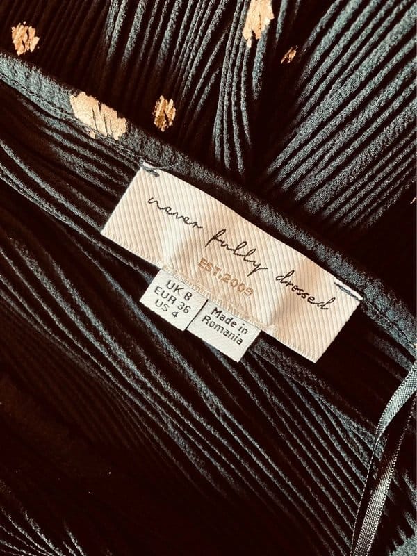“Pair with gold strappy heels and a clutch bag for evening events.”